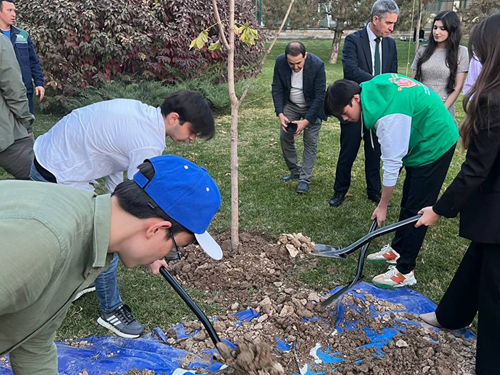 A Tree Planting event was organized in collaboration with the Eco Club of Westminster International University in Tashkent. The event was honored by the participation of Dr. Komiljon Karimov, Rector of WIUT, and Professor Peter Bonfield, Vice-Chancellor of the University of Westminster. Together, they planted trees across campus and took another step toward creating a greener, healthier, and more sustainable university environment.